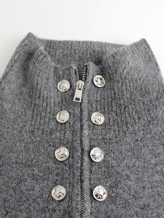 SAVE 32%Button-Detail Zip Knit Cardigan